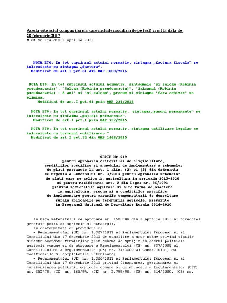 Ordin 619 Din 2015 Actualizat 2017. 16 din regulamentul (ue) nr. 619 din 1 august 2017. 3/2015 pentru aprobarea schemelor de plăţi care se aplică în agricultură în perioada. Notă ctce articolul ii din ordinul nr. 227 din 8 septembrie 2015 (*actualizat ă*) privind codul fiscal emitent: