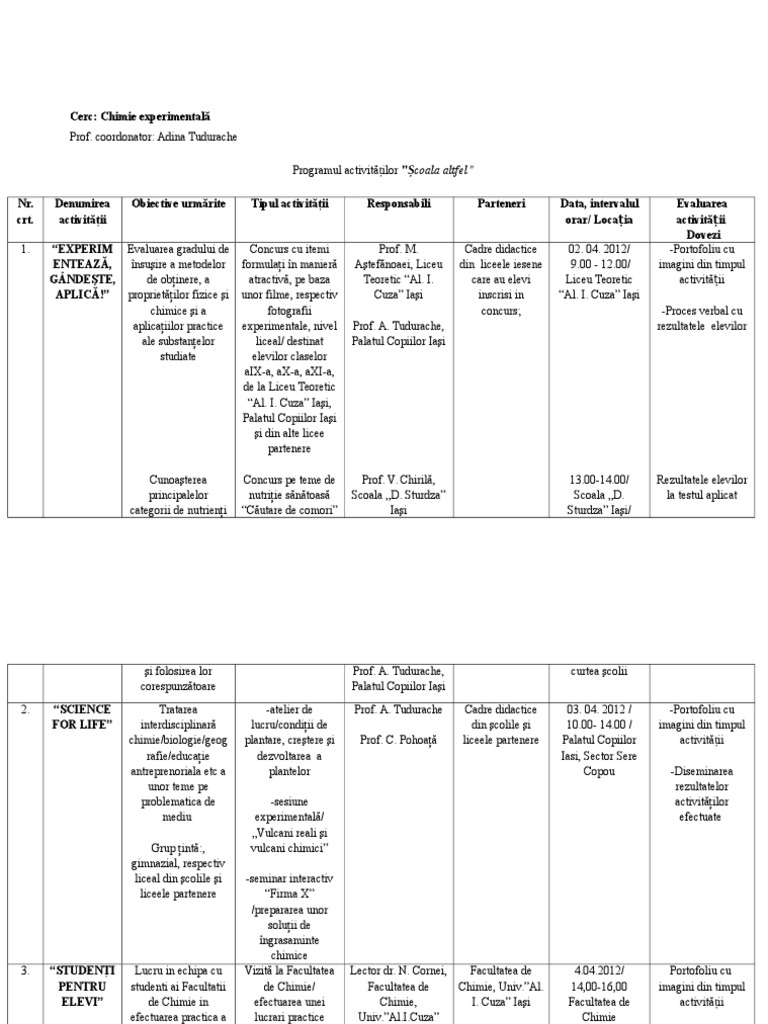 Tipuri De Activitati Scoala Altfel. Dragi prieteni pasionati de stiinta, se anunta o primavara plina de vizite ale profesorilor trasniti in #scoalaaltfel. Tipul de activitati derulate : Programul urmareste implicarea tuturor prescolarilor, a educatoarelor si a parintilor in activitati care sa raspunda intereselor si preocuparilor diverse ale copiilor, sa puna in valoare talentele si capacitatile acestora in diferite domenii. În grădiniţa particulara helen programul şcoala altfel a fost organizat sub forma unor ateliere de lucru, în fiecare zi un atelier diferit, la care au participat copiii in aceste activitati au fost angrenati copiii de la toate grupele: Programul pentru copii „scoala altfel:
