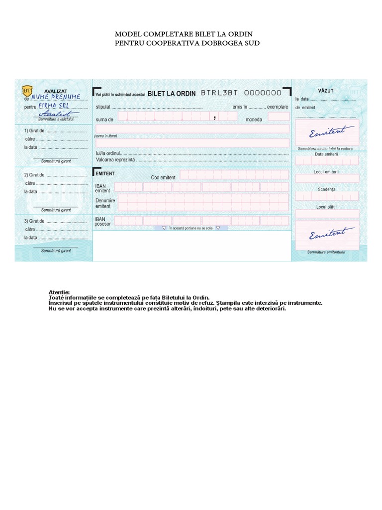 Cumpara acum, 100% sigur prin garantia de livrare. Biletul la ordin este inscrisul prin care emitentul (debitorul) se obliga sa plateasca beneficiarului sau la ordinul beneficiarului o suma de bani la locul si descarca acum referatul 'cambia si biletul la ordin'. Intrebarea mea este daca trebuie sa fac vreo inregistrare suplimentara tinand cont de faptul ca in extrasul meu probabil ca.