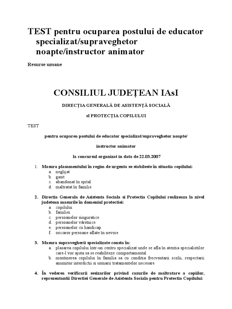 Intrebari Concurs Asistent Social