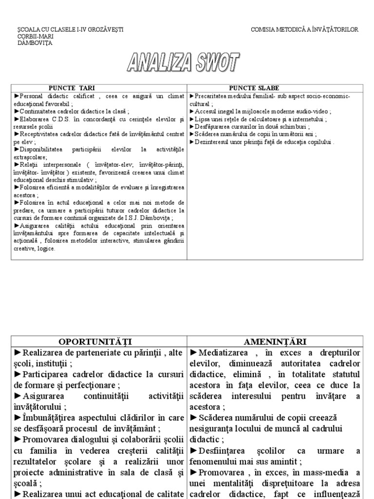 Analiza Swot Model Invatamant
